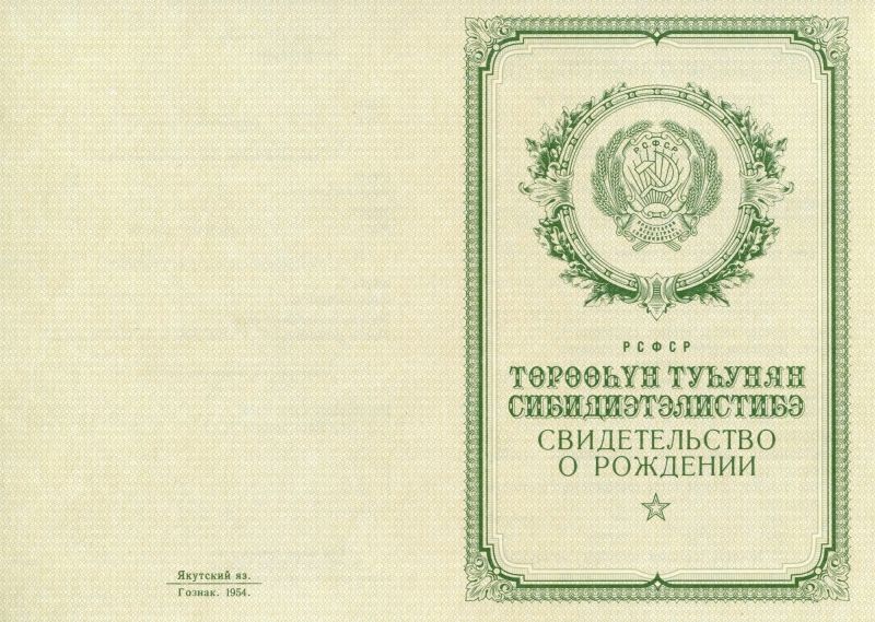 • Документ: Свидетельство о рождении УССР